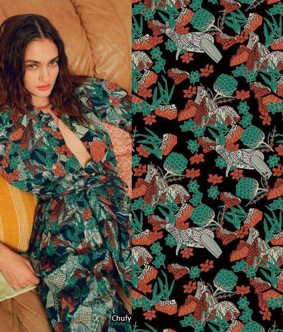 Combinando elementos geométricos, florales y texturas animales, crea patrones audaces y únicos, es una exhibición muy romántica para el otoño e invierno, rompiendo fácilmente la impresión de monotonía y seriedad tradicional de estas estaciones. Al mismo tiempo, transmite madurez, estabilidad, valentía, rebeldía y fuerza. Incluye flores que poseen un maravilloso sentido de romanticismo y una sensación de tranquilidad, patrones de cuadros que añaden una sensación de capas y tridimensionalidad, así como geometrías artísticas de colores vibrantes que reflejan simplicidad y vitalidad sin perder estilo.
