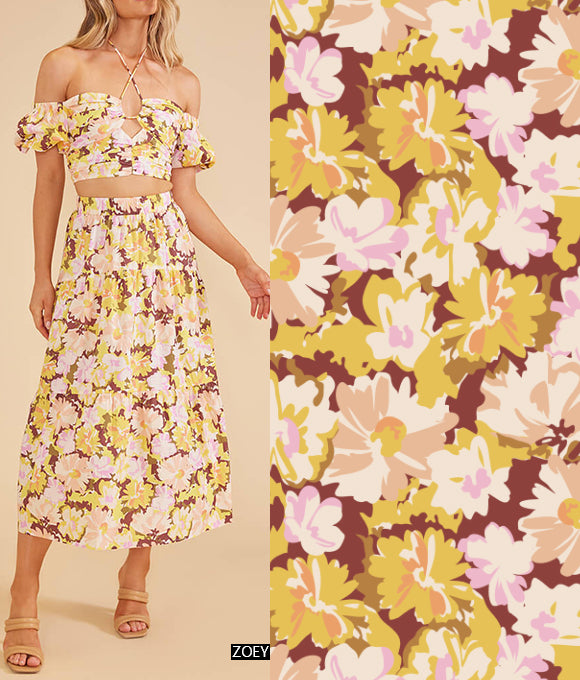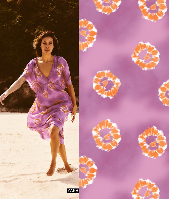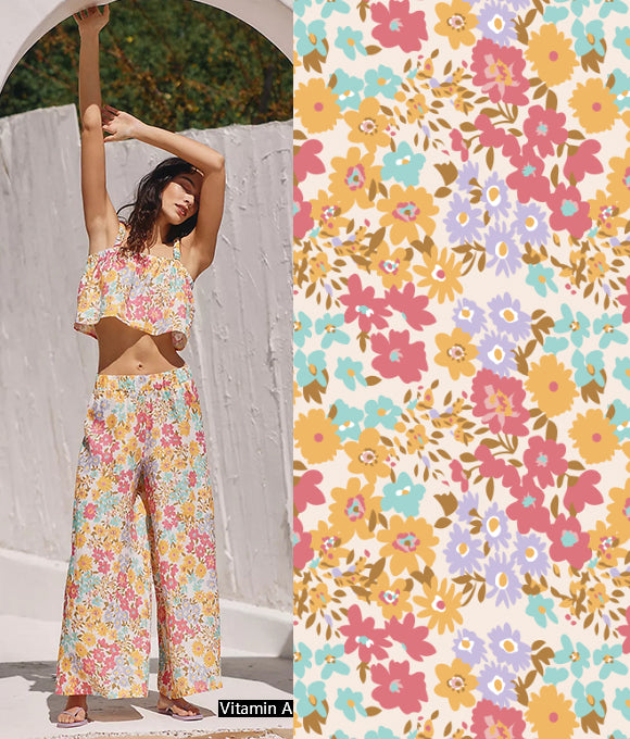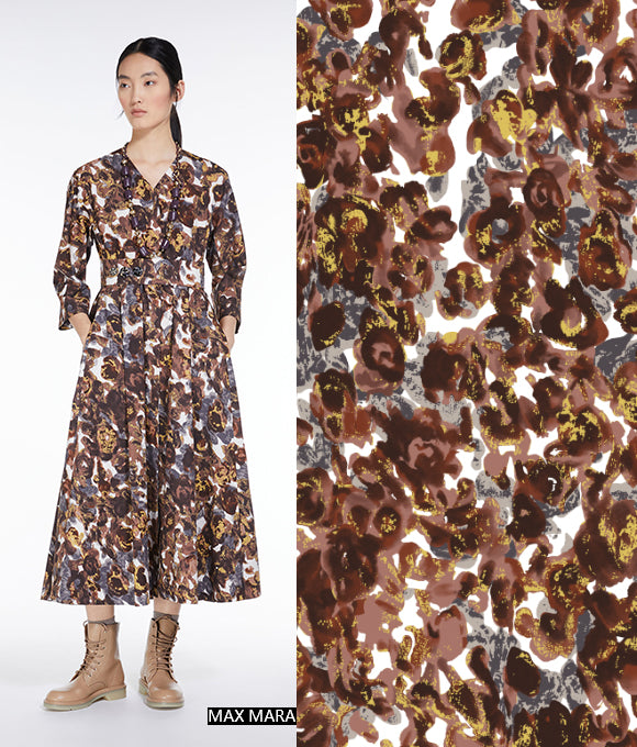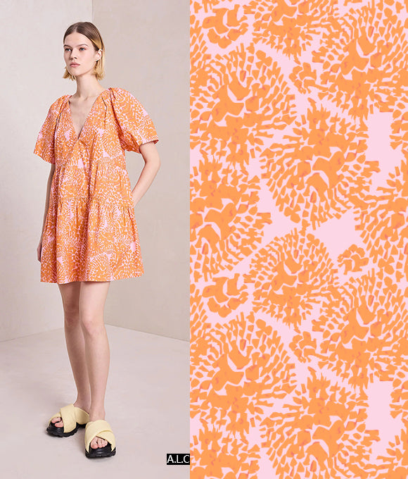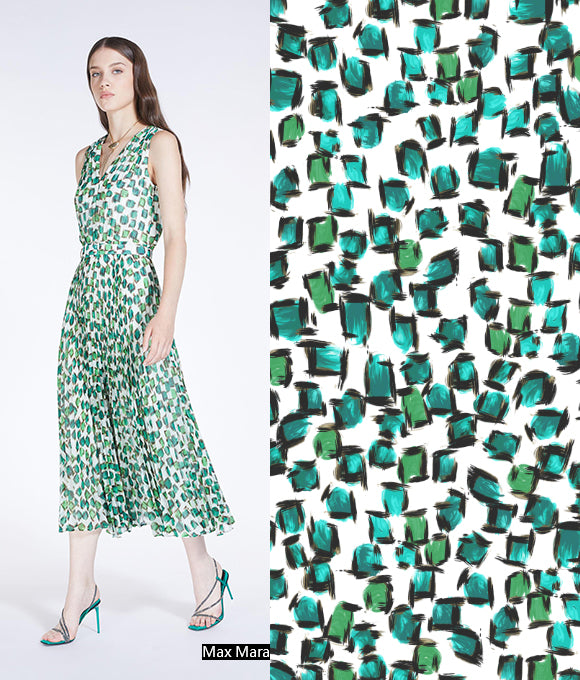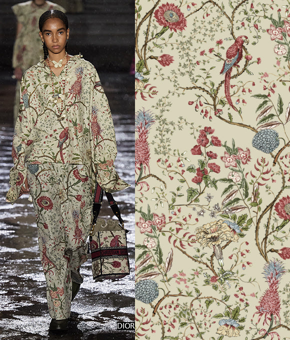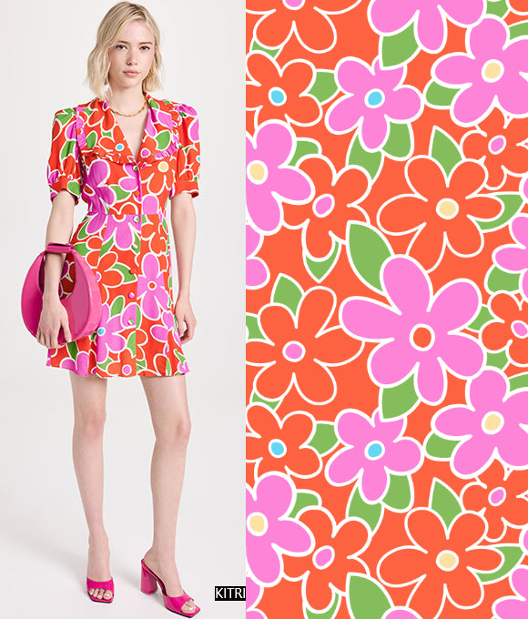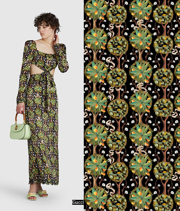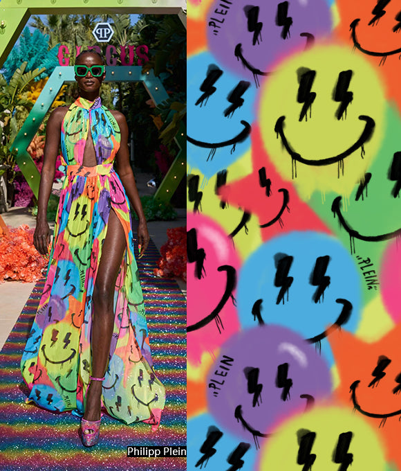 Un diseño nítido, realista y con textura, lleno de detalles. Los grandes racimos de flores están superpuestos en capas profundas y superficiales, creando una sensación romántica y sofisticada. Los límites entre los patrones florales están dispuestos de manera desordenada y con una textura delicada y tridimensional, lo que amplía las posibilidades del diseño floral. Los colores iridiscentes y los difuminados psicodélicos de alta moda añaden un fuerte sentido de movimiento y sofisticación fría. La paleta general de colores es variada en profundidad, evitando quedar atrapada en un solo tono, mejorando así la elegancia general del diseño.