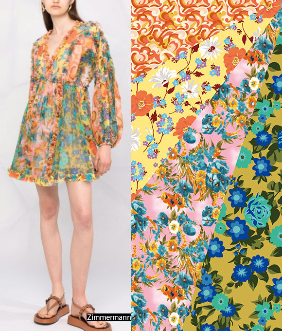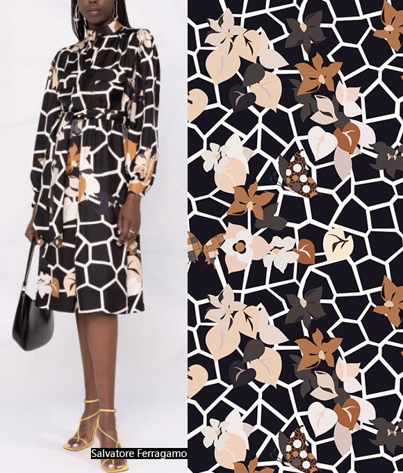 Combinando elementos geométricos, florales y texturas animales, se crean patrones audaces y únicos. Esta exhibición romántica para el otoño e invierno rompe fácilmente la impresión de monotonía y seriedad tradicional de estas estaciones, mientras transmite madurez, estabilidad, valentía, rebeldía y fortaleza. Las flores aportan un maravilloso sentido de romanticismo y una sensación de tranquilidad, los patrones de cuadros añaden una sensación de capas y tridimensionalidad, y las geometrías artísticas de colores vibrantes reflejan simplicidad y vitalidad sin perder estilo.